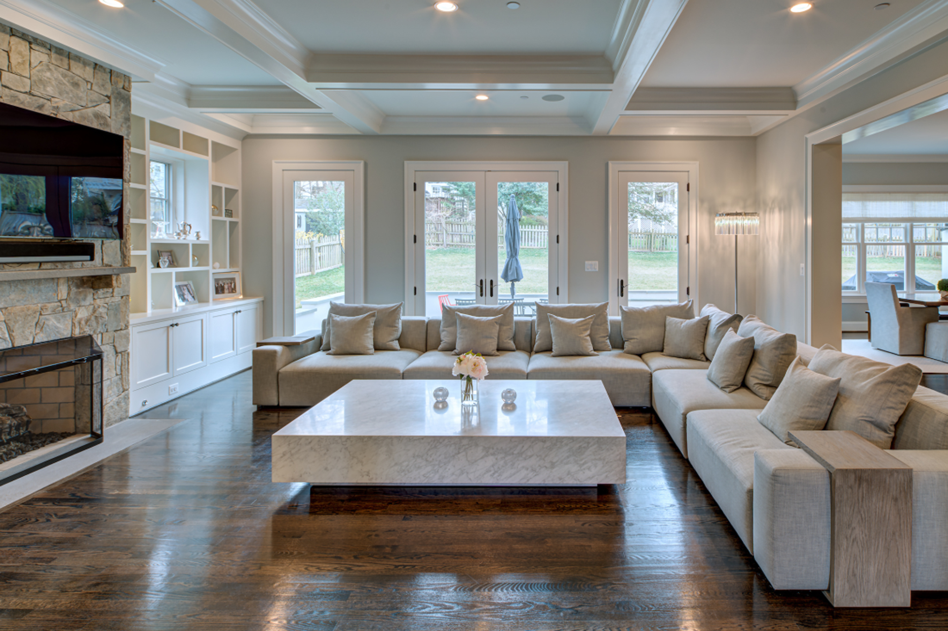 Distinctive New 7153 finished SF home offered with 6 BR, 6 BA and 2PR on large 13,950 SF premium lot in highly desirable exclusive Village of Drummond